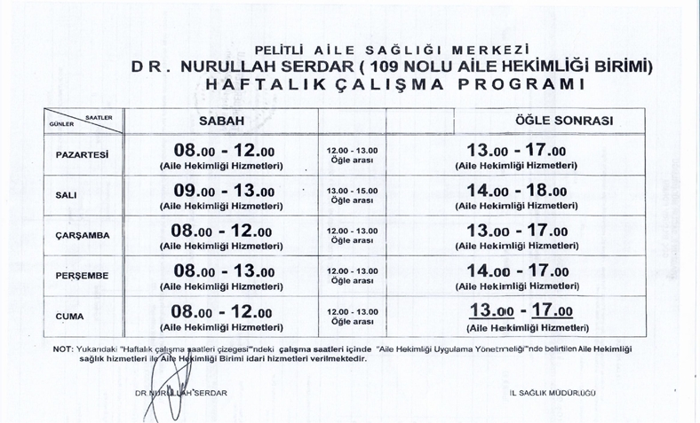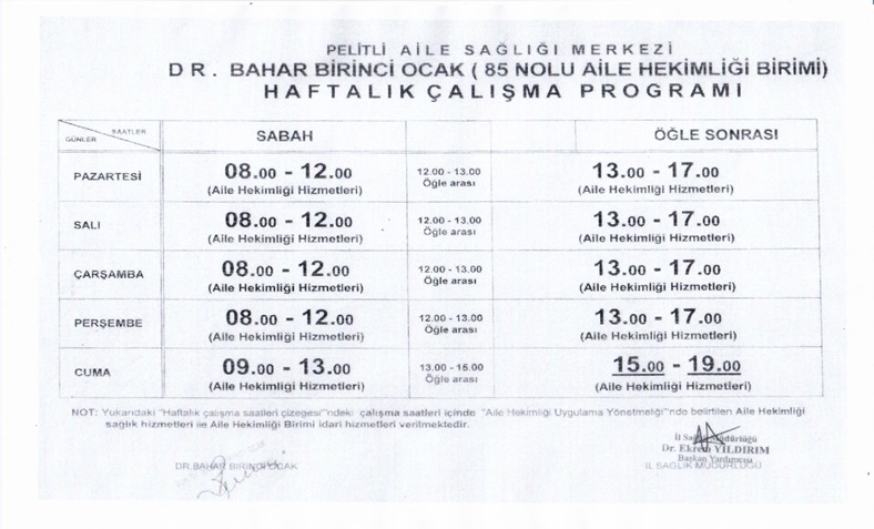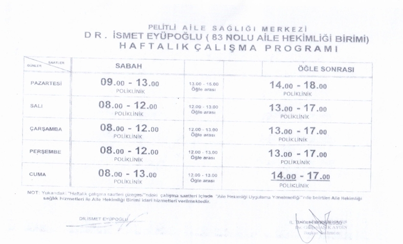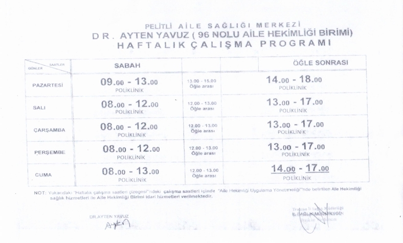 Aile Hekimliği Birimlerimiz ve Haftalık Çalışma Programları